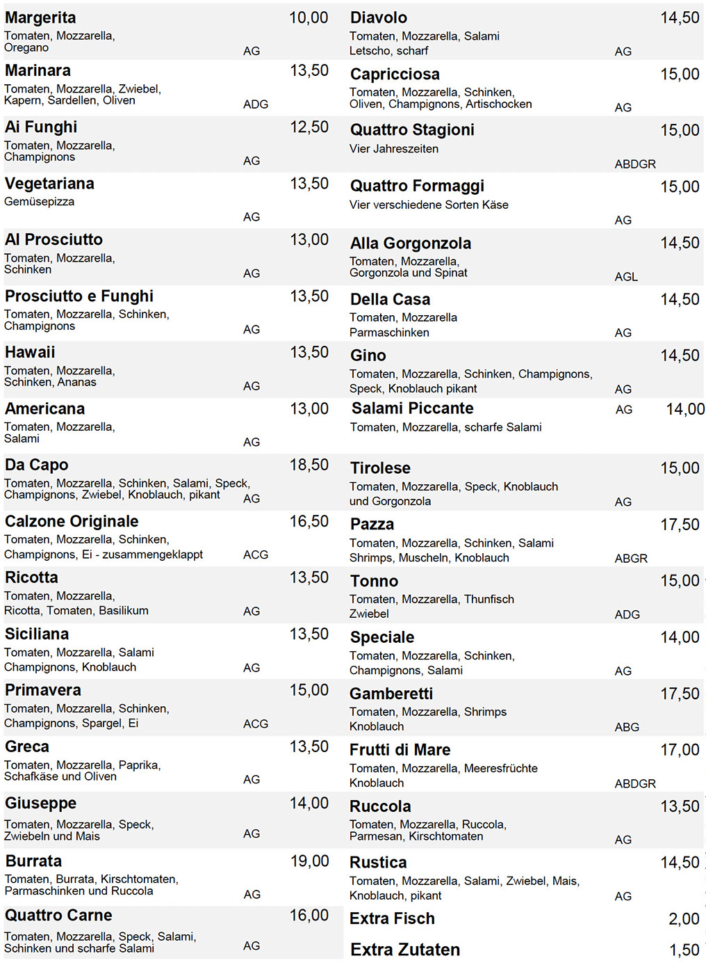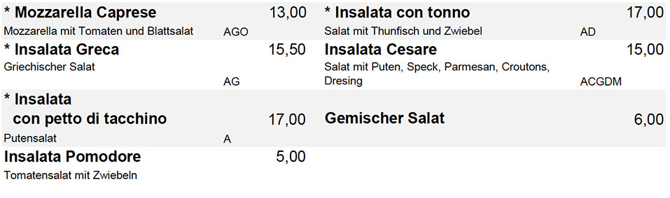 Salate mit * werden mit Pizzabrot serviert!